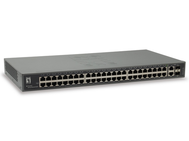 Switch Unmanaged, 48x10/100TX + 2xGbE/SFP, int. PSU, 19" , LevelOne, FGU-5021