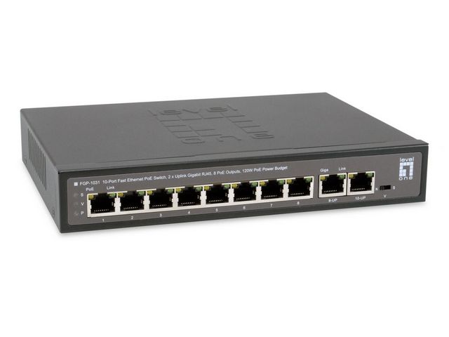 Switch Unmanaged, 8x10/100TX PoE Plus 120W + 2x10/100/1000T, int. PSU , LevelOne, FGP-1031