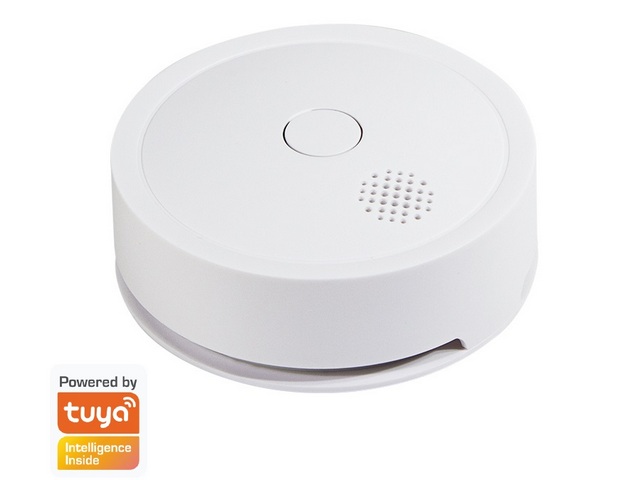 Protect your home from fire • Control via an existing Wi-Fi network with the free Smart life or Megos Smart Home App • Tuya compatible, supports Amazon Alexa and Google Home • Reacts with a loud alarm and sends a notification via the app • LED indicator • Mounting on the ceiling or wall • 5-year battery (replaceable) • Silent mode to avoid false alarm from cooking or steamy shower • System requirements: Android 5 or above / iOS 11 or above • Color: White