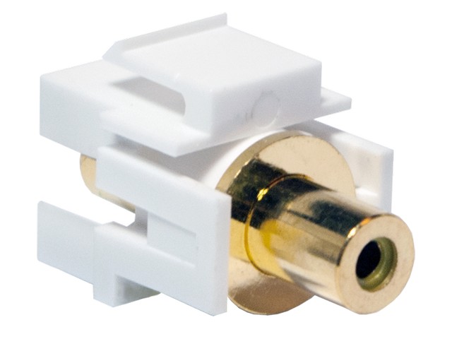 Snap-in Keystone Module suitable for standard keystone panels and outlets • Connections: RCA female to RCA female, yellow (composite video) • Application: RCA/Cinch Audio/Video cabling • Material: Gold-plated contact, thermoplastic housing • Color: Yellow
