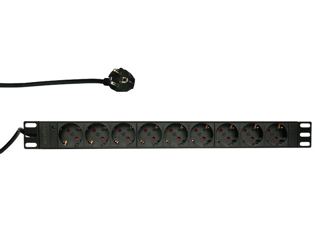 Strujna priključnica, 19", 9xSchuko/16A, bez prekidača, ALU, crna, kabel 2,0 m