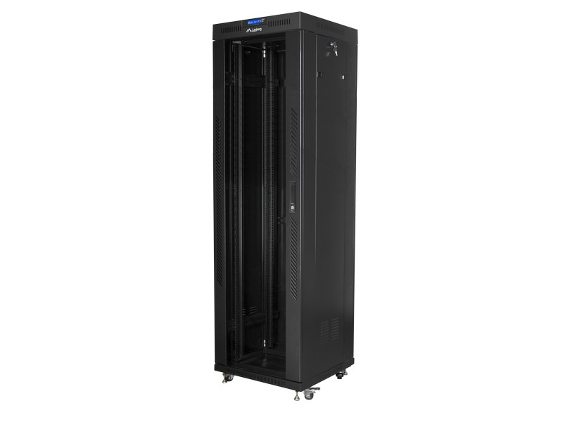 Ormar samostojeći 42U - 600(š)x600(d)x2128(v) mm, crni (RAL 9004), kpl. s kotačima i niv. nogicama, 2 vent + termostat (LCD), setom za uzemljenje, rastavljen , Lanberg, FF01-6642-12BL