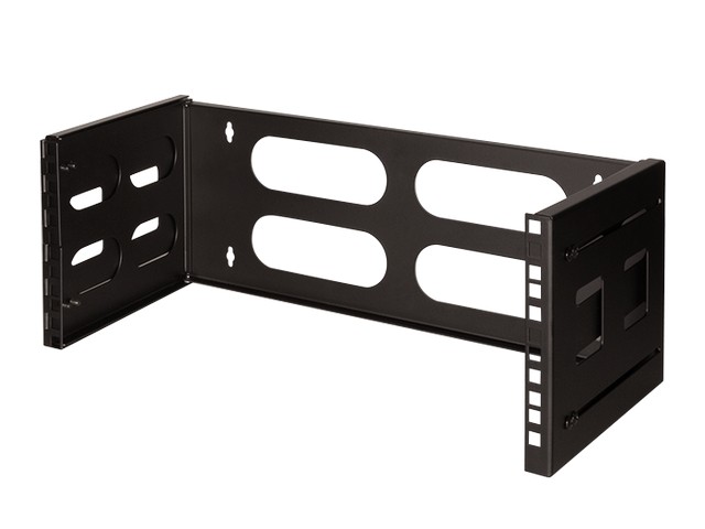 Wall bracket for mounting 19" devices • 4 units height, 494 x 183 x 400 mm (W x H x D) • Depth adjustable from 236 up to 400 mm • Max. static load: 12 KG • Foldable, delivery in space-saving flat pack • Color: Black RAL 9005