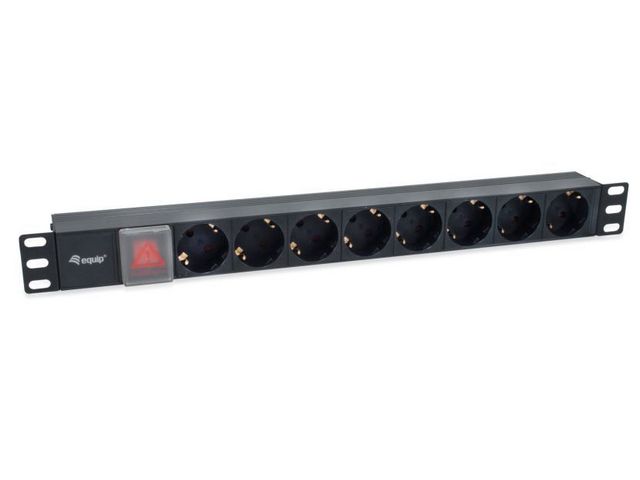 Strujna priključnica, 19", 8xSchuko/10A, prekidač, PVC, crna, kabel 1,8 m C14 , equip, 333286