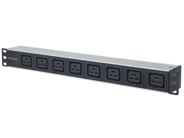 Strujna priključnica, 19", 8xC19/16A, bez prekidača, ALU, odvojivi kabel C19->Schuko 2,0 m , Intellinet, 163613