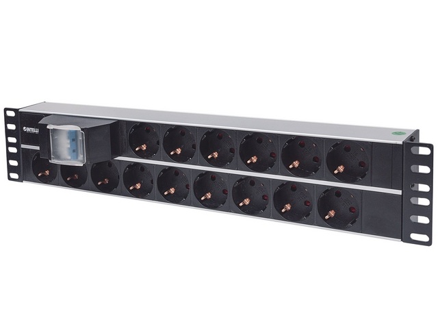 Strujna priključnica, 19", 15xSchuko/16A, 2-struki autom. osigurač, ALU, kabel 3,0 m , Intellinet, 714051