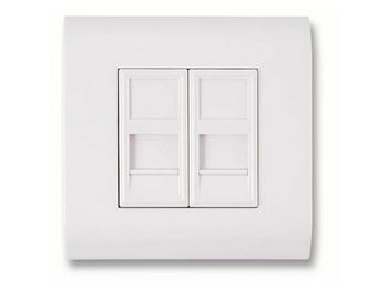 Faceplate 80 x 80 mm RAL9010 pure-white • For keystone jack RJ45 (2 x 45 x 45) • (Poland, France, Turkey, Mediterranean area)