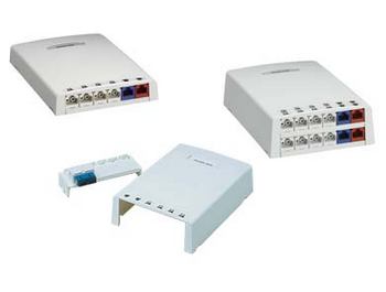 Accept Mini-Com® Modules for STP and UTP, fiber optic, and audio/video, which snap in and out for easy moves, adds, and changes • Mount easily with supplied mounting screws or adhesive tape • Cable tie slots for improved cable management • Tamper resistant screw for added security • Unique built-in fiber spool design secures cable in place and stores up to 78.8 feet (24 meters) of buffered fiber optic cable • Cable entry from side and rear knockouts and from opening in bottom of base • Optional adhesive labels available • Combination label/label cover for custom outlet identification