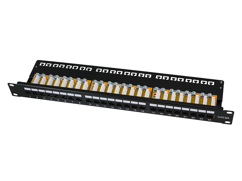 UTP prespojni panel Cat.6a, 24-Port, 19" 1U, crni (RAL 9005)