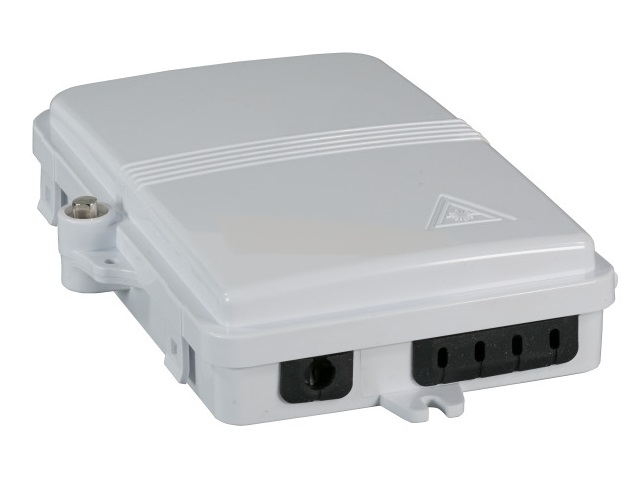 Number of Fibres: 8 • Suitable for adapter: SC Simplex/LC Duplex/E2000® • Max. Assembly (Adapter): 4 • Cable entry without cable gland: 1x max. 10 mm / 4x max. 4 mm • IP Protection: IP65 • Dimensions: 172x136x40 mm • Colour: White • Delivery unassembled (Crimp splice holder fo 12 splices, shrink splice holder(max. 8 splices double layed), 4x shrink protection and material for wall mounting included)