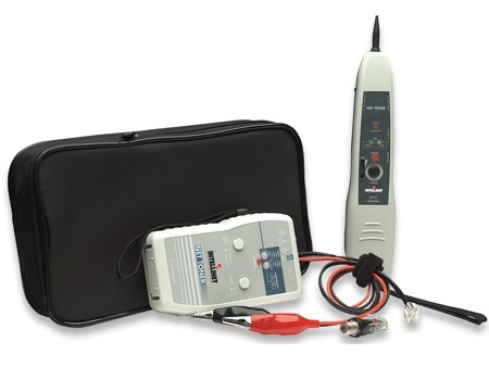 Tests datacom, telecom, security, video, and audio networks • LEDs for line polarity, continuity and voltage • Enhanced talk battery mode provides power for voice communications over inactive pairs • Testing leads and modular cables for individual wire tests or modular jack tests • Replaceable plastic tip to prevent accidental shorts • Trace or identify wire or cables in a bundle or group • Alligator clips, RJ45 jack, RJ12 plug, optional F-connector