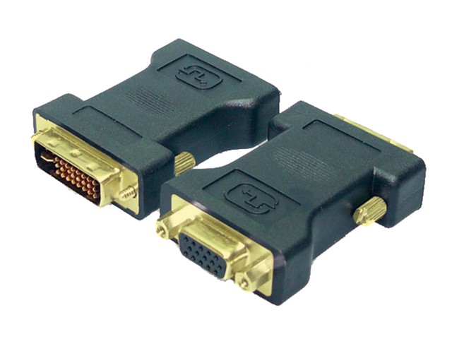High-quality VGA to DVI Adapter • Connection 1: HD DSUB 15-pin female • Connection 2: DVI-I (24 +5) male • Brackets with thumbscrews • Standard plug • Molded plastic hood • Robust construction • Gold-plated contacts • Supports High Density resolution • ROHS compliant