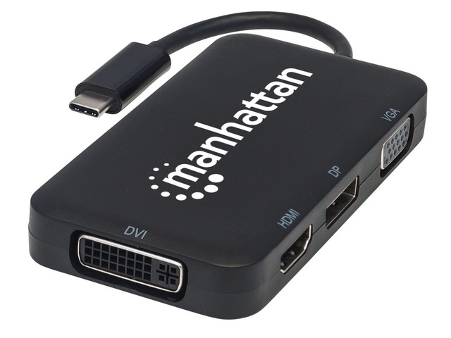Konverter USB 3.1 C M -> HDMI/DP/VGA/DVI Ž, na kabelu, crni , Manhattan, 152600