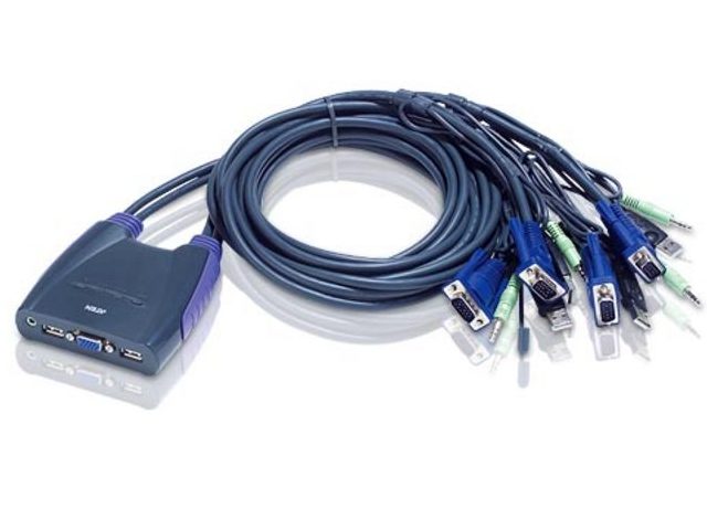 KVM Switch, USB-VGA+Audio 4 Port, kpl s kabelima 1,2 m, desktop , Aten, CS64US