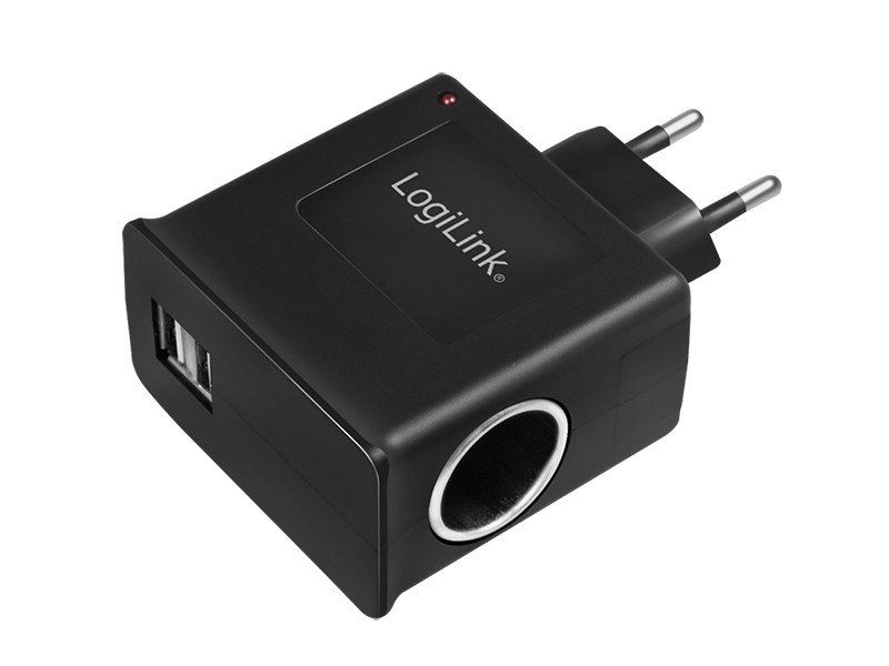 Ports: 1x cigarette lighter socket, 2x USB ports • Input: 230V, 50/60 Hz, 1A max. • Cigarette lighter output: 12V/1A (max. 12W) • USB port output: 5V/1A (max. 5W) • Overvoltage and short-circuit protection