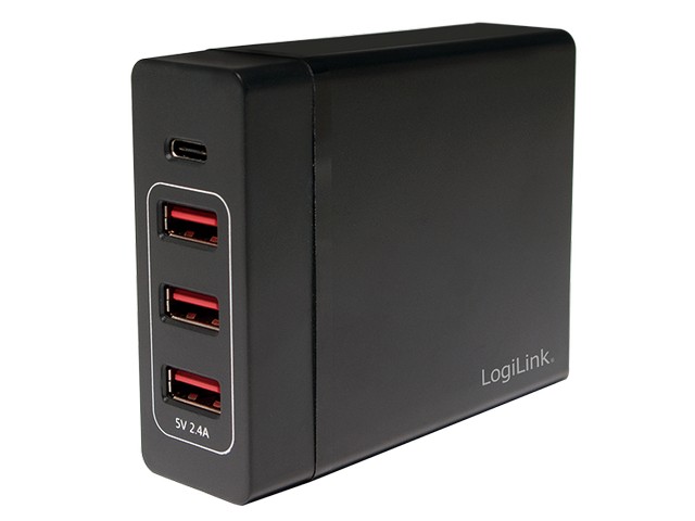 USB punjač, 3xUSB-A 12W + 1xUSB-C 60W PD, crni , LogiLink, PA0122
