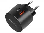 USB punjač, 1xUSB-A QC 3.0 + 1xUSB-C PD 3.0, 20W, crni