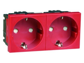 Multi-support multiple sockets - German standard • For installation in flush-mounting box, surface-mounting box, floor box, column module, desktop multi-outlet extension and office module • Inclined 45° • Connection by automatic terminals • 2 x 2P+E • Red