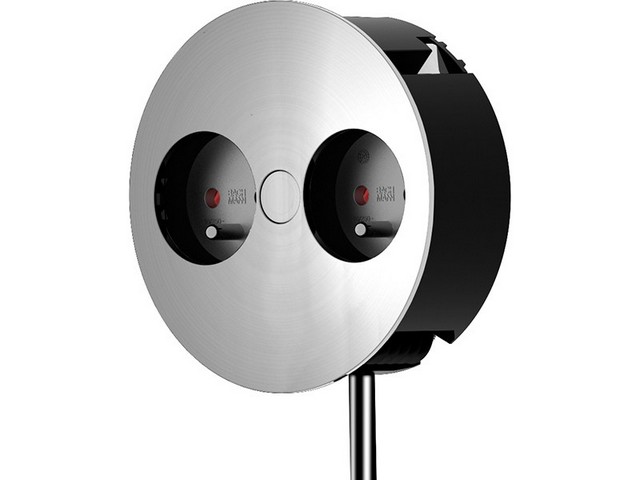 2 x socket outlets with earthing contact, child-proof, black • Installation diameter 105 mm, installation depth 40 mm • for desk or table top thicknesses of 20 mm to 40 mm • Metallic stainless steel look cover disc • power input: 2.0 m cable with end sleeves • black earthing contact mounting plug (included)