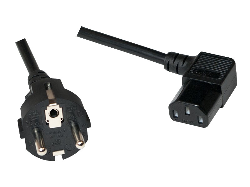 Connector 1: Safety plug (CEE 7/7) • Connector 2: IEC 60320 C13 (female) 90° • Cable Type: H05VV-F3G 3x 1.0 mm2 • Suitable for 230 V, 10 A, 2300 W • VDE & ENEC approved • With double protective contact • Color: Black • Length: 3 m • Package: Bulk