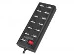 Hub USB-A 2.0 -> 13xUSB-A, s napajanjem 3,5A, s prekidačem, crni