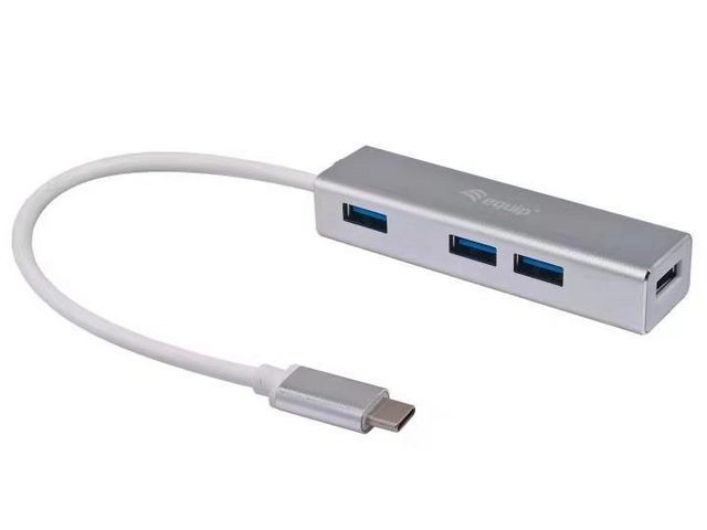 Hub USB-C 3.2 Gen 1 -> 4xUSB-A, Bus Powered, na kabelu, ALU , equip, 128958