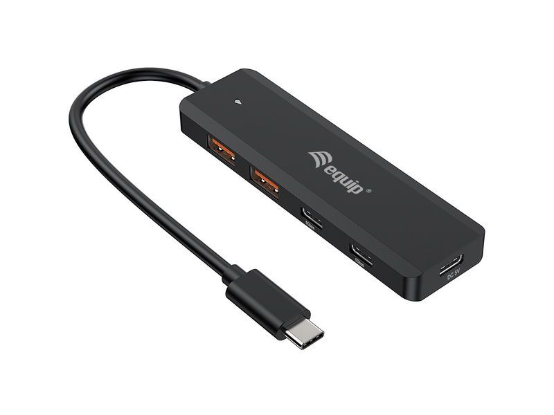 Hub USB-C 3.2 Gen 2 -> 2xUSB-A + 2xUSB-C + 1xUSB-C za napajanje, na kabelu 18 cm, crni , equip, 128966