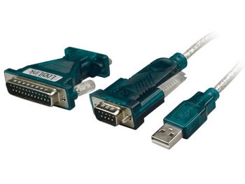 Konverter USB 2.0 A M -> Serial RS-232 DB-9M, kpl s kabelom 1,3 m i adapterom DB9->DB25 , LogiLink, UA0042B