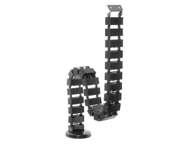 An attractive and practical way to keep your wiring neat and tidy; the Cable Spine routes cables from floor to desk and provides mechanical protection and strain relief • Vertical cable managment spine • Snap-together interlink blocks with 18 mm diameter steel base plate • Total lenght: 1300 mm • Dimension single square cable clips: 67 x 35 mm • Flexible, recommended for Sit-Stand Desks • It can be shorted by removing some elements • Material: ABS, steel; Color: Black