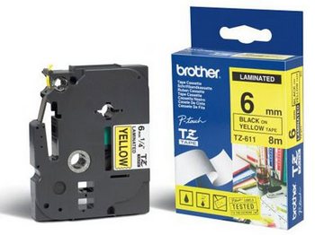 Traka za označavanje 6 mm/8 m, žuta , Brother, TZe-611